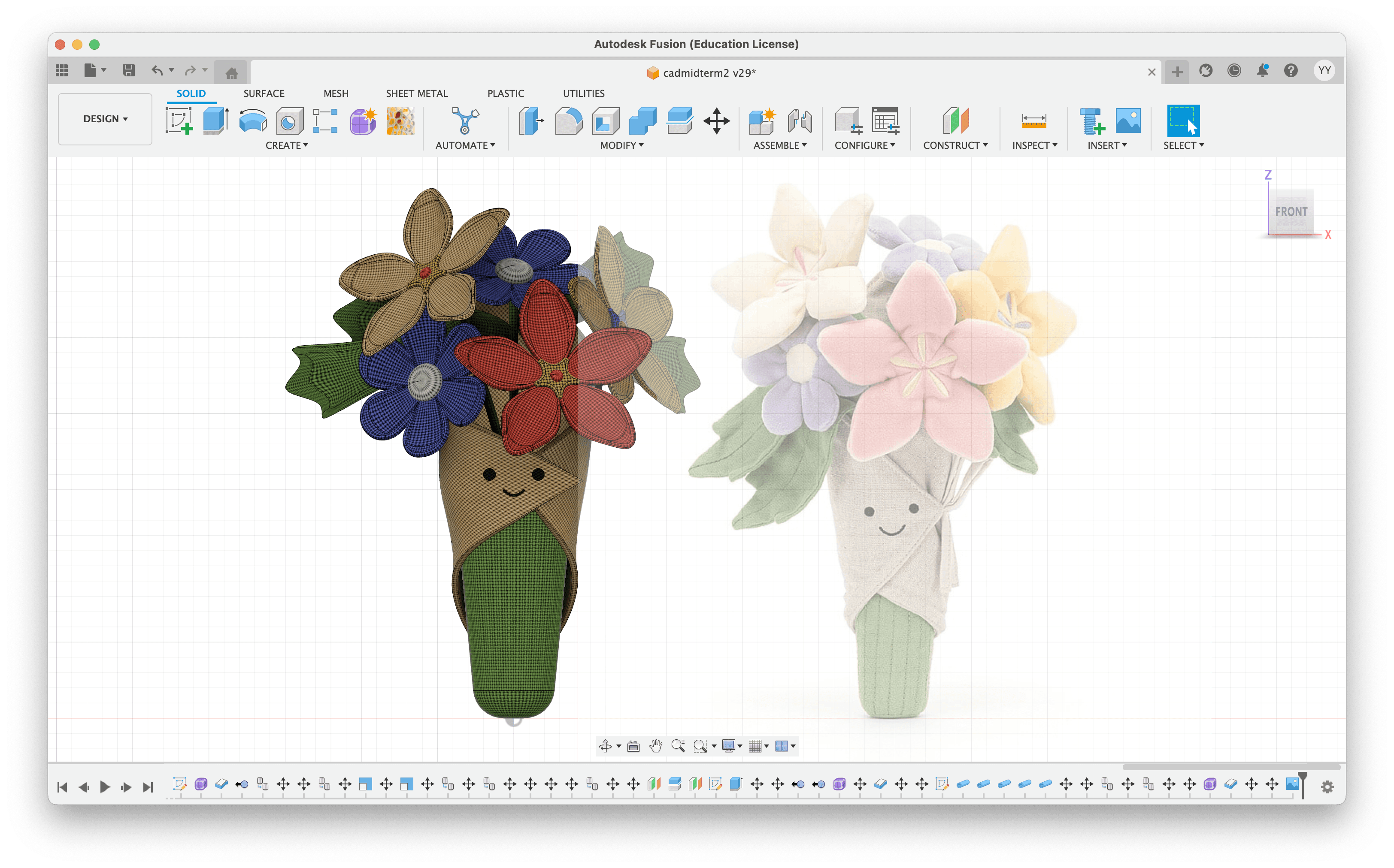 A recreation of Jellycat's bouquet of flowers in Fusion 360.