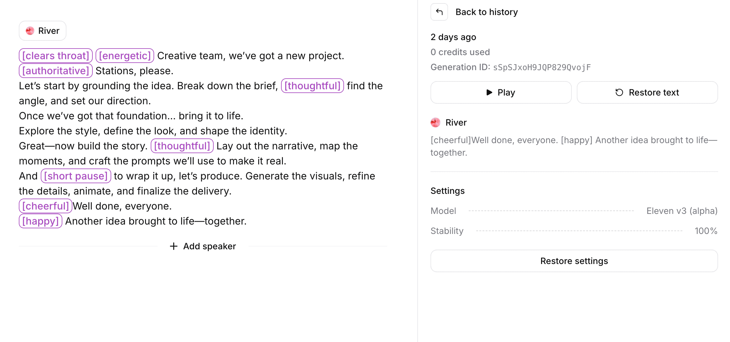 All spoken instructions and guidance in the videos were generated through this system, giving the project a consistent storytelling layer. The voice acts as a bridge between the viewer and the characters, explaining each step while maintaining a playful and confident tone.