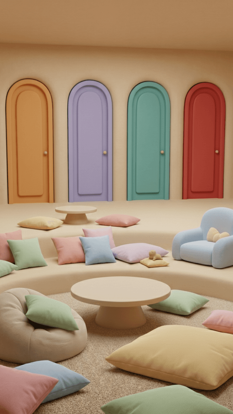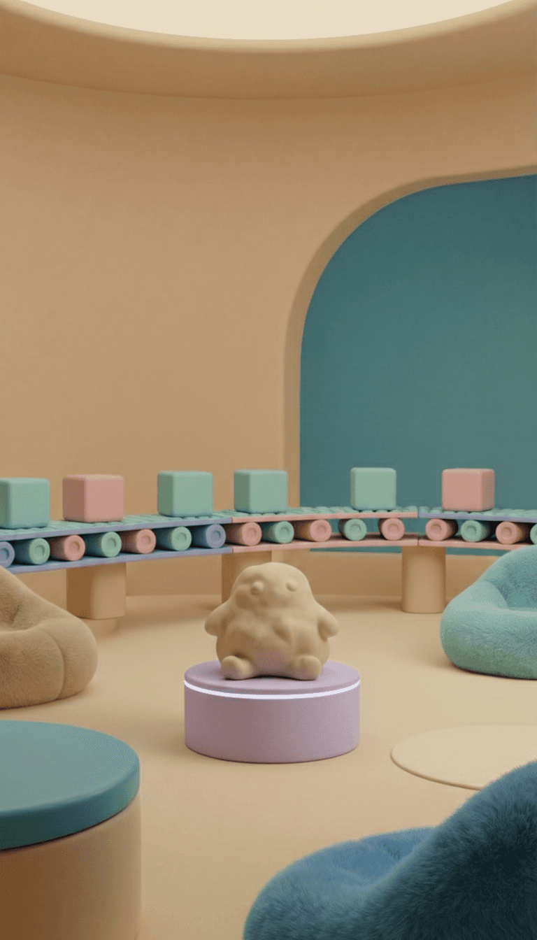 Each scene was carefully imagined with warm lighting, plush textures, and soft pastel tones to create a consistent and inviting visual language. Together these environments form a complete journey through the creative pipeline.